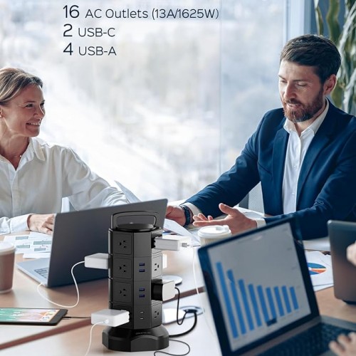 Power Strip Tower Surge Protector, JACKYLED 16 Outlets 6 USB (2 USB C) Charging Station, Extension Cord with Multiple Outlets, 1050J 1625W/13A Outlet Extender 6.5ft Extension Cord for Home Office