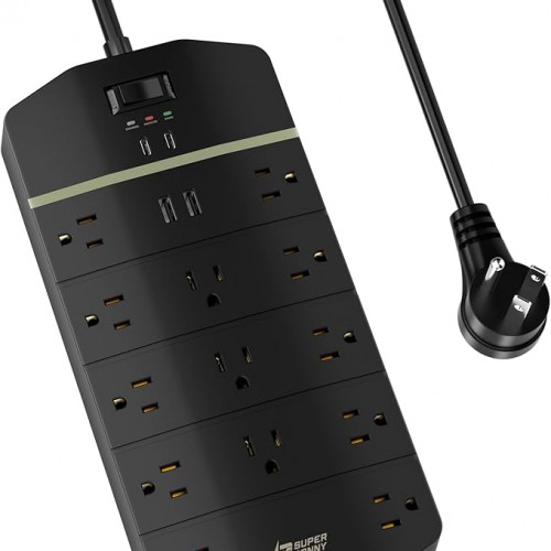 - Surge Protector Power Strip: This power strip surge protector tower with overload protection protects your electrical appliances from lighting, surges or spikes. With minimum energy-absorbing capacity of 900 Joules to protect your expensive devices like cellphone, laptop, tablet, etc