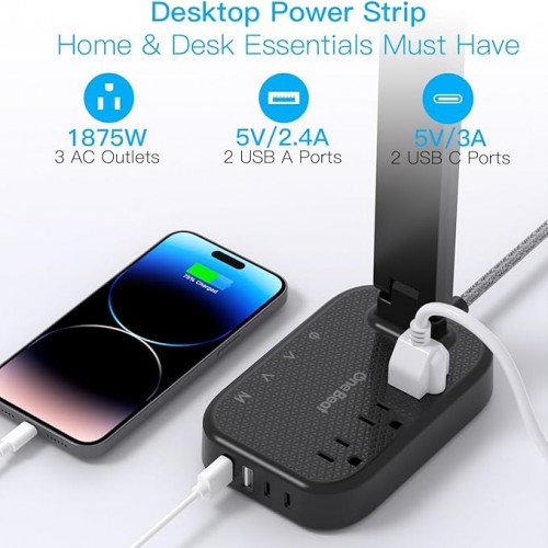 - 【 10 Ft Extension Cord & Plug In and Use 】 This usb c power strip with 45° low profile right angled flat plug and 10 feet extension cord, you can carry it anywhere. It not only a table lamp, but also a multi-function desktop power strip wtih usb charging station.