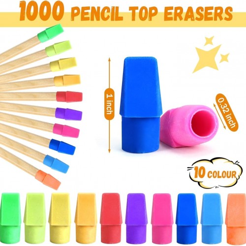 PRALB 1000PCS Pencil Top Eraser Bulk Caps for Pencils,Chisel Shape Erasers Toppers for Party Favors Games Prizes, Pencil Top Erasers Cap for Home School Classroom Office