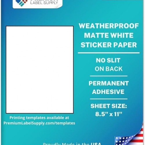 Premium Label Supply Waterproof White Inkjet Sticker Paper – 8.5″ x 11″ Full Sheet Labels – Inkjet Printers only – Similar to Vinyl – 1000 Sheets