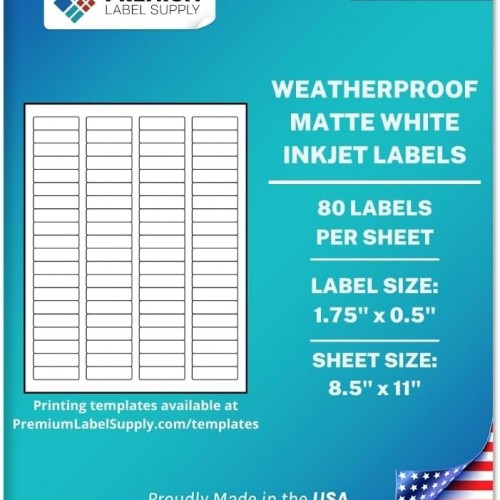 - WATERPROOF LABELS: This set of 80,000 (1.75” x 0.5”) labels is great choice for durable return address labels. The waterproof material is made to stand up to the weather and keep your mailing labels intact.