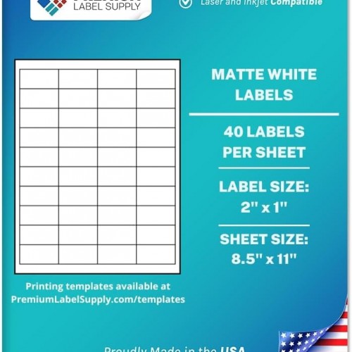 Premium Label Supply White Sticker Barcode Labels – 2″ x 1″ – Laser/Inkjet Compatible – (40 per Sheet), 25 Sheets – 1000 Total Adhesive Labels