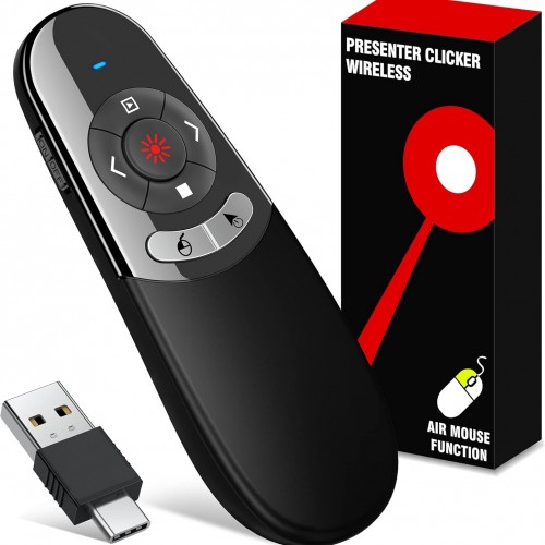 Presentation Clicker Green Laser Pointer, Rechargeable PowerPoint Clicker Wireless Presenter Remote, RF 2.4GHz USB Presentation Pointer Slide Advancer with Hyperlink Volume Control for Mac Computer