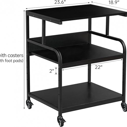 Printer Stand, 23.6 x18.9 x 30 Inches Large Printer Table with Adjustable Storage Shelf, 3 Tier Rolling Printer Cart with Wheels for Home Office, Stand for Heat Press Mini Fridge, Black