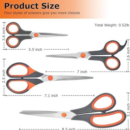- Ultra-Portable 4-Pack Scissors for Anywhere Use – Compact and lightweight, this scissors set fits effortlessly in desk drawers, backpacks, or travel kits—ideal for office, classroom, or on-the-go crafting.
