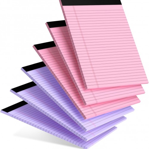 - Purple colored Legal Pads 8.5 x 11 Inch are perfect for students, teachers, and professionals. Made with premium 80gsm thick paper, these notepads provide a luxurious writing experience. The colored paper resists ink bleeding, while the black lines and double red margin lines offer ample space for your notes.