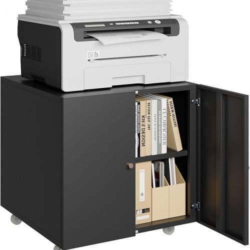 QDSSDECO 3-Drawer with Shelf Wood File Cabinet Mobile Lateral Filing Cabinet, with Rolling Wheel Printer Stand and Open Adjustable Storage Shelves, for Home Office, White