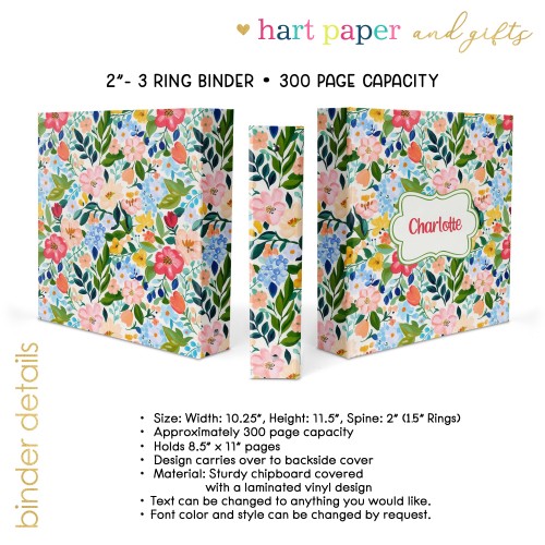 Rainbow Flowers Personalized Custom 2″ 3 Ring Binder • School Office Supplies