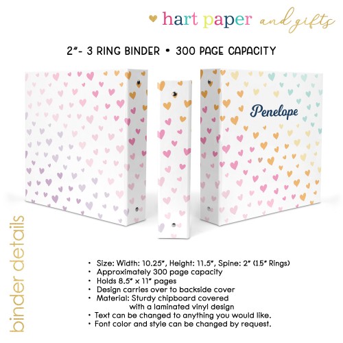 Rainbow Hearts Personalized Custom 2″ 3 Ring Binder • School Office Supplies