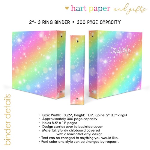 Each binder is made to order and personalized with your name, monogram, or custom text, making it a unique and functional gift for kids, teens, and adults. Choose from a wide selection of colors, patterns, and themed designs—from playful and bright to clean and professional—so there’s something for everyone.