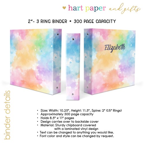 Rainbow Personalized Custom 2″ 3 Ring Binder • School Office Supplies