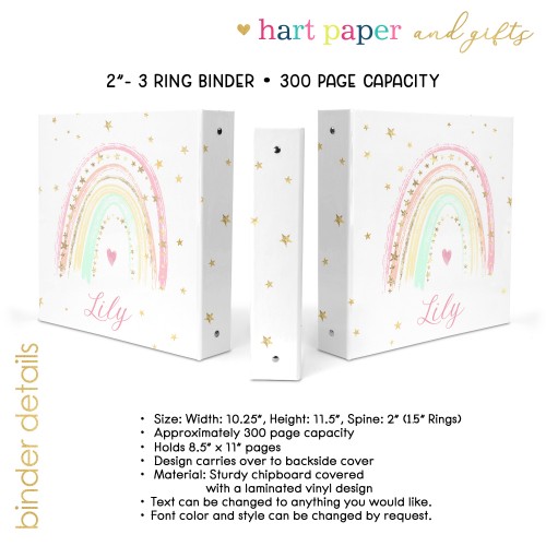 Each binder is made to order and personalized with your name, monogram, or custom text, making it a unique and functional gift for kids, teens, and adults. Choose from a wide selection of colors, patterns, and themed designs—from playful and bright to clean and professional—so there’s something for everyone.