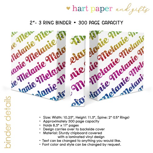 Rainbow Repeat Name Personalized Custom 2″ 3 Ring Binder • School Office Supplies