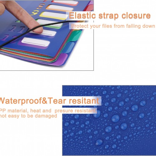 Expanding Accordion File Folder with Labels, 13 Pocket Document Organizer, Letter A4 Size, 1 Pack