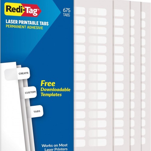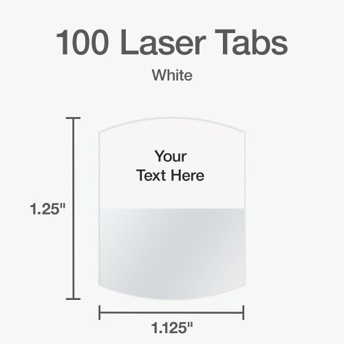 - Laser Tabs come in 4 sheets per pack; 45 tabs per sheet for a total of 180 tabs per pack; white; tab size: 7/16″ x 1″