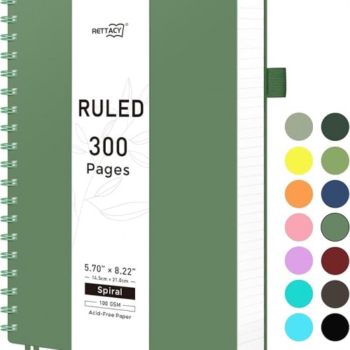 - TWIN-WIRE SPIRAL BOUND: RETTACY College Ruled Notebook features a sturdy twin-wire spiral bound, easy page turning as well as the ability to lay flat at 180°. The cover is made of PVC plastic which is waterproof and provides protection for your valuable notes