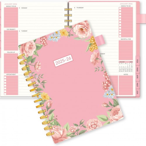 Rileys Academic Planner 2025-2026, Daily, Weekly & Monthly Planner, July 2025 – June 2026, Student Notes Pages, Twin-Wire Binding, Weekly Agenda for School & Work (8.5 x 11-Inches, Pink, Diagonal)