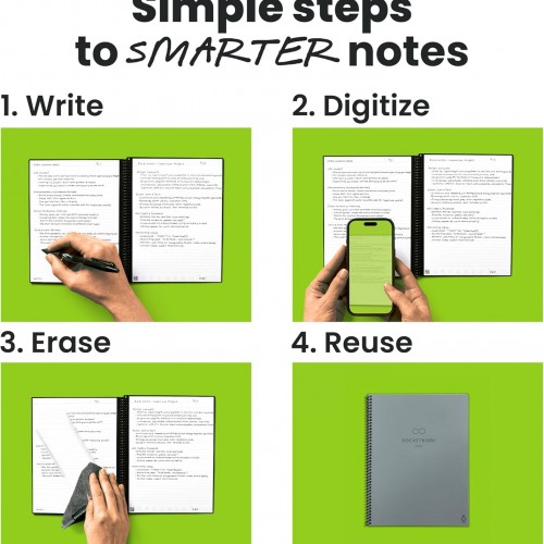 Rocketbook Fusion Reusable Undated Productivity Planner, Executive Size 6×8.8, Gray – Goals, Monthly and Weekly Calendar, Daily To-do List, Lined and Dotted Notes Pages