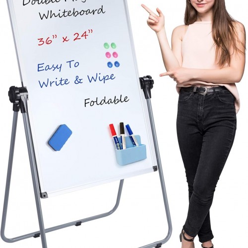 Rolling Whiteboard 40×28 Inches – Adjustable Height Standing Easel Whiteboard on Wheels for Home, Office, Classroom Black