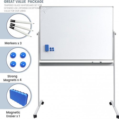 Rolling Whiteboard Magnetic Writeboard 48″x36″ Flip Chart with 4 Wheels 2-in-1 Easel-Style Dry Erase Boards 2-in-1 Message Bulletin Board (White)