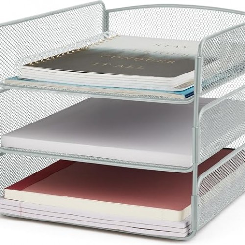 - ORGANIZER- Onyx steel mesh triple tray desk organizer