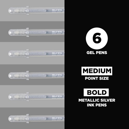 - Metallic, Opaque Silver Ink: Gel pens have metallic silver ink that flow creamy smooth onto light and dark paper