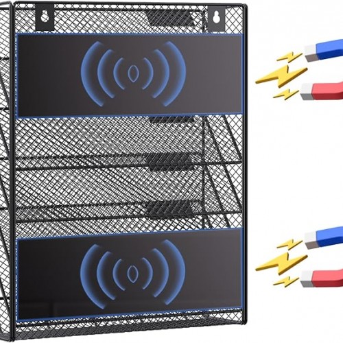 samstar 12 Tier Wall File Organizer, Hanging Wall Mount File Holder Paper Folder Mail Organizer, Mesh Metal, Black.