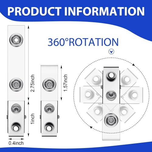 Seajan 3000 Pcs Metal Badge Clips Bulk Double Hole Name Tag Clips with Clear PVC Straps Alligator ID Strap Clips for ID Cards Holders Office School Supplies