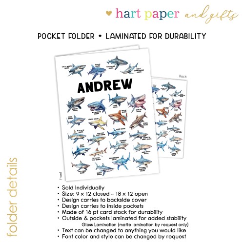 Shark Personalized Custom 2-Pocket Folder • School Office Supplies 1 – 2Pocket Folder
