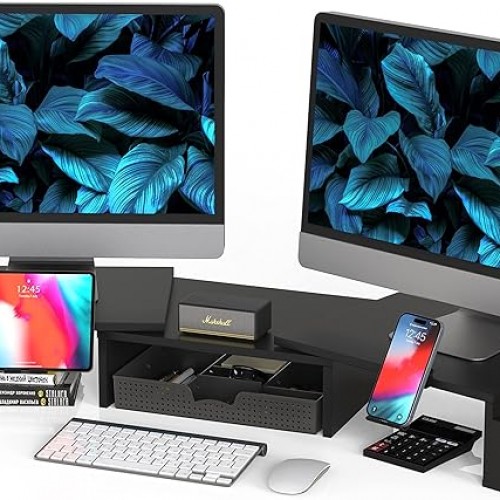 Simple Houseware Desk Dual Monitor Stand Riser with Drawer, Maple