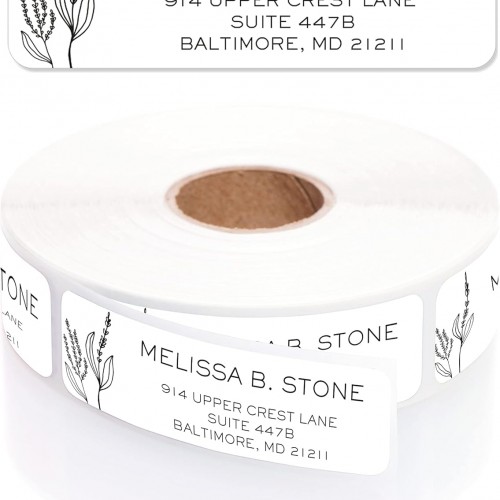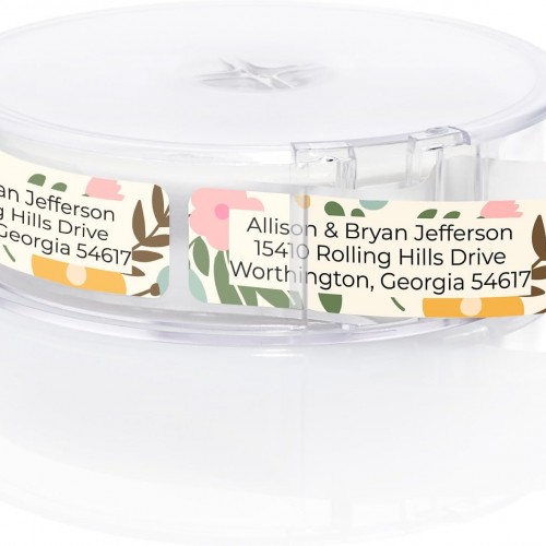 Simple Modern Flower Rolled Address Labels/Roll of 500 Floral Illustration Personalized Address Labels/Designer Return Address Stickers in Elegant Plastic Dispenser