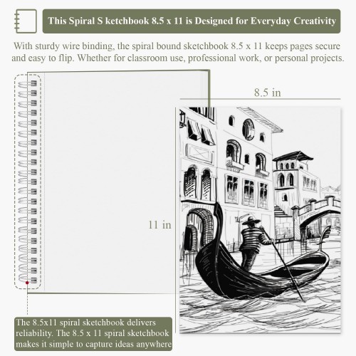 - SIDE SPIRAL-BOUND SKETCHBOOK, EASY PAGE TURNING – With a side spiral bind, all the drawing paper of this spiral sketchbook 8.5×11 is firmly held together and can be easily flipped and kept on the back. The metal spiral bind of sketchbook for drawing is sturdy and will not easily deform even after months of use, so you can feel free to draw your creations on the 8.5 x 11 sketchbook, SuFly art sketchbook can keep them long lasting.