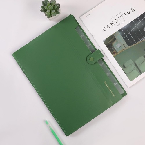 SKYDUE Expanding File Folders with 8 Pockets, Accordion File Organizer with Labels, Portable Paper Bill Receipt Organizer, Letter Size, Home School Office Supplies, Olive Green