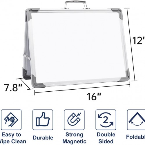 - STURDY AND PORTABLE: Small white board with double-sided design, so the small white board can stand independent on the desktop by it self. Sturdy aluminum frame with ABS corners, Small white board it will not be out of shape in daily use. light weight portable with a handle on the top for travelling.