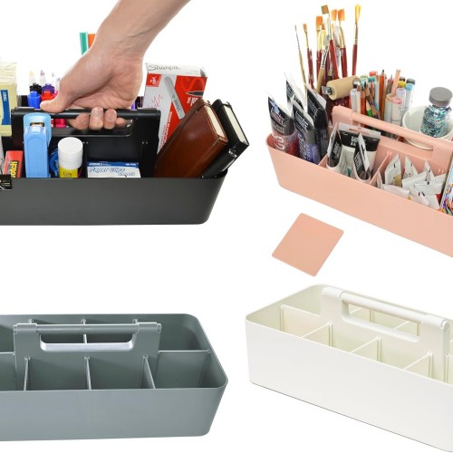 - Equipped with a sturdy and comfortable handle, this portable caddy allows you to effortlessly carry your essentials wherever you go. Whether you’re moving from room to room, heading to a class or workshop, or embarking on a creative adventure outdoors, this caddy ensures your items stay secure and easily accessible.