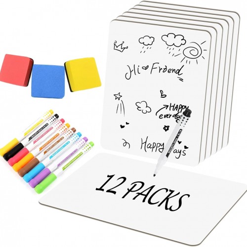 Small White Board Dry Erase 6 Pack Classroom Pack,9″x12″Double Sided Personal Mini Whiteboard for Students School,Portable White Boards Lapboards Including Dry Erase Erasers and Markers