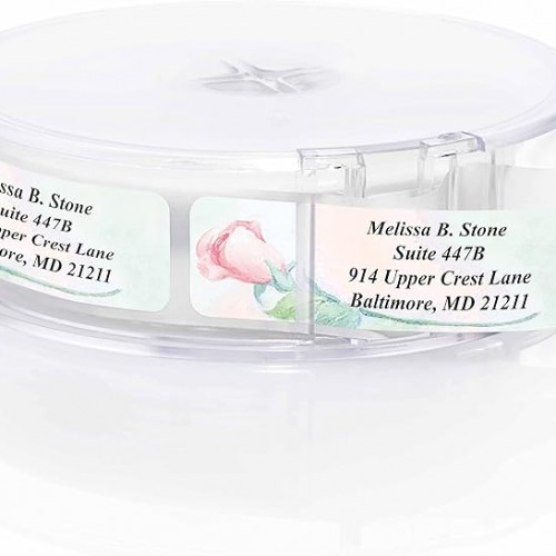 Soft Rose Watercolor Designer Rolled Address Labels with Elegant Plastic Dispenser