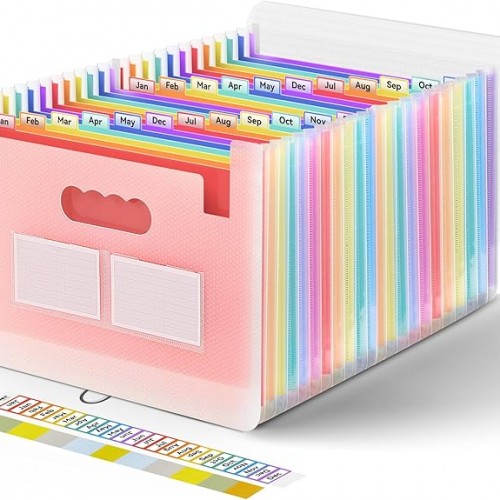 Sooez 26-Pocket Accordion File Organizer, Upgraded Expanding File Folder with Unobstructed A-Z Tabs, Premium Bill Tax Receipt Document Organizer Storage for Letter/A4 Size Paper, School Office & Home