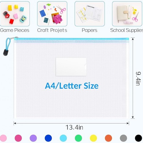 Sooez 36 Pack Mesh Zipper Pouch with Sticky Labels, A4 Mesh Bags for Board Game Puzzles Organization Storage, Durable Letter Size File Folders Organizer for Teacher School Classroom Office Supplies