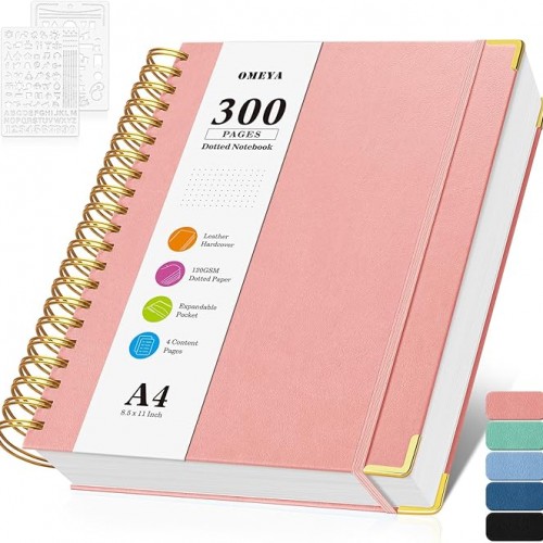 - 【Premium Leather Cover & Strong Binding】Spiral notebook showcases a luxurious leather hard cover, complete with golden corner protectors for extra durability. Its professional design not only looks stylish but is built to last. The strong metal double spiral binding allows for a full 360° lay-flat design, making writing more comfortable and efficient. Whether flipping through or laying the Subject notebook flat, this design guarantees a smooth writing experience.