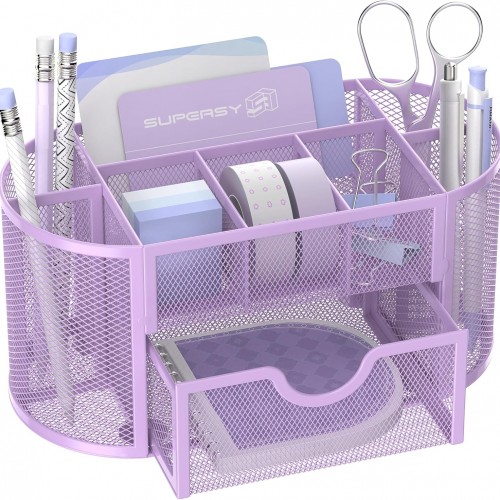SUPEASY Mesh Desk Organizer, Desk Accessories & Workspace Organizers with Drawers, Pencil Holder for Desk with 9 Compartments for Office Suppliess, 8.6 x 4.3 x 4.1 Inch, Yellow