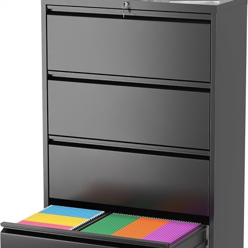 - ✔Large Filing Organization Storage — This metal lateral filing cabinet with four large file drawers with adjustable hanging bars, accommodate for legal, letter, A4, F4 size hanging folders, great to keep your files, documents and other office supplies organized. Extra plastic pads under the 4 drawer filing cabinet to prevent scratching the floor while maintaining stability.