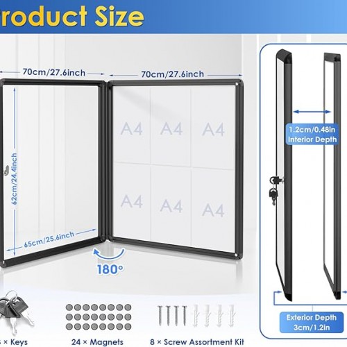 SWANCROWN Enclosed Bulletin Board Magnetic Dry Erase Noticeboard Lockable Display Boards White with Aluminium Frame 26x20inch(4xA4)