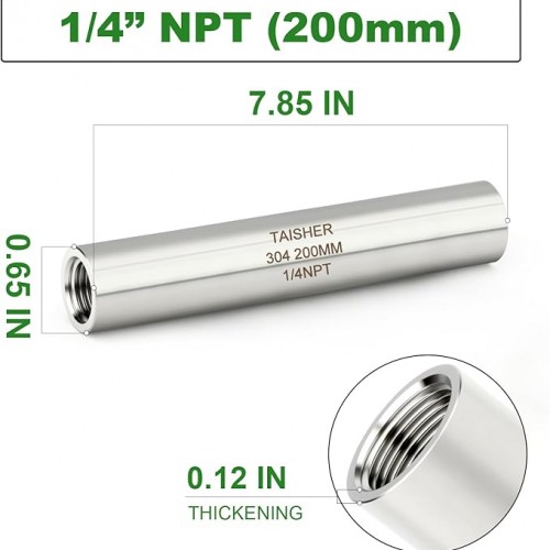 - Product Type —— Thickened Nipple Cast Pipe(1/4″Female NPT x 1/4″Female NPT,8″style is about 200 mm length),NPT thread size does not actual diameter, it is only nominal pipe size.