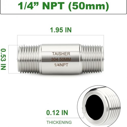 TAISHER 2PCS Stainless Steel Pipe Fittings, 1/4″ NPT Male x 1/4″ NPT Male Threaded, 2″ Length Thickened Nipple Cast Pipe