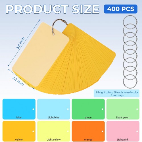 Tecmisse 400 PCS Colored Index Cards with Ring, 2.2 x 3.5 Inch, Small Blank Note Cards with Waterproof Covers,Flash Cards Studying for Office School Supplies