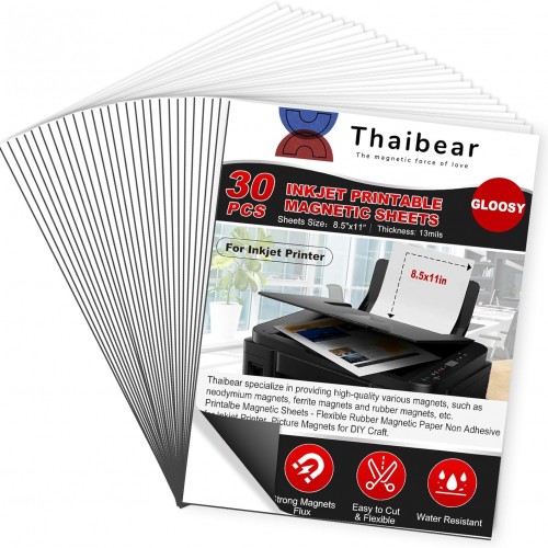 Thaibear Printable Magnetic Sheets 8.5×11 Inch Inkjet, 15 Pack Glossy Flexible Magnetic Paper Sheets for Printer, Magnet Sheets Non Adhesive for Photo, Die Storage and Stickers