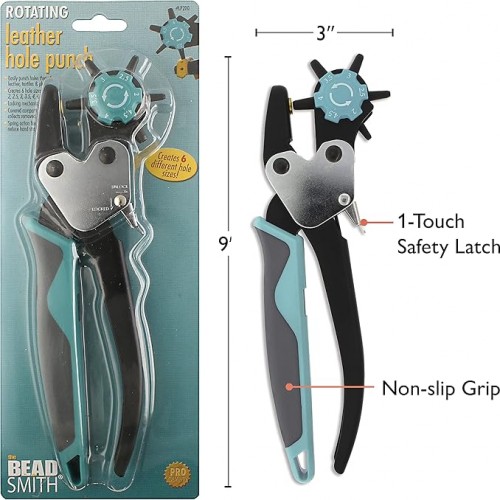 - EASY TO USE: This artisan tool allows for precision crafting and quality results. Rotate the wheel clockwise to the desired size, comfortably squeeze the handle and easily punch through a multitude of materials including leather, rubber, plastic, canvas, cardboard and fabrics such as silk and denim.