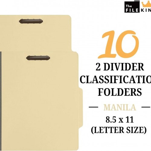 The File King Two Divider Manila Classification File Folder – Letter Size | 10 Pack | 2/5 ROC Top Tab | 1″ Expansion | 2″ Fastener Prongs | Made in America